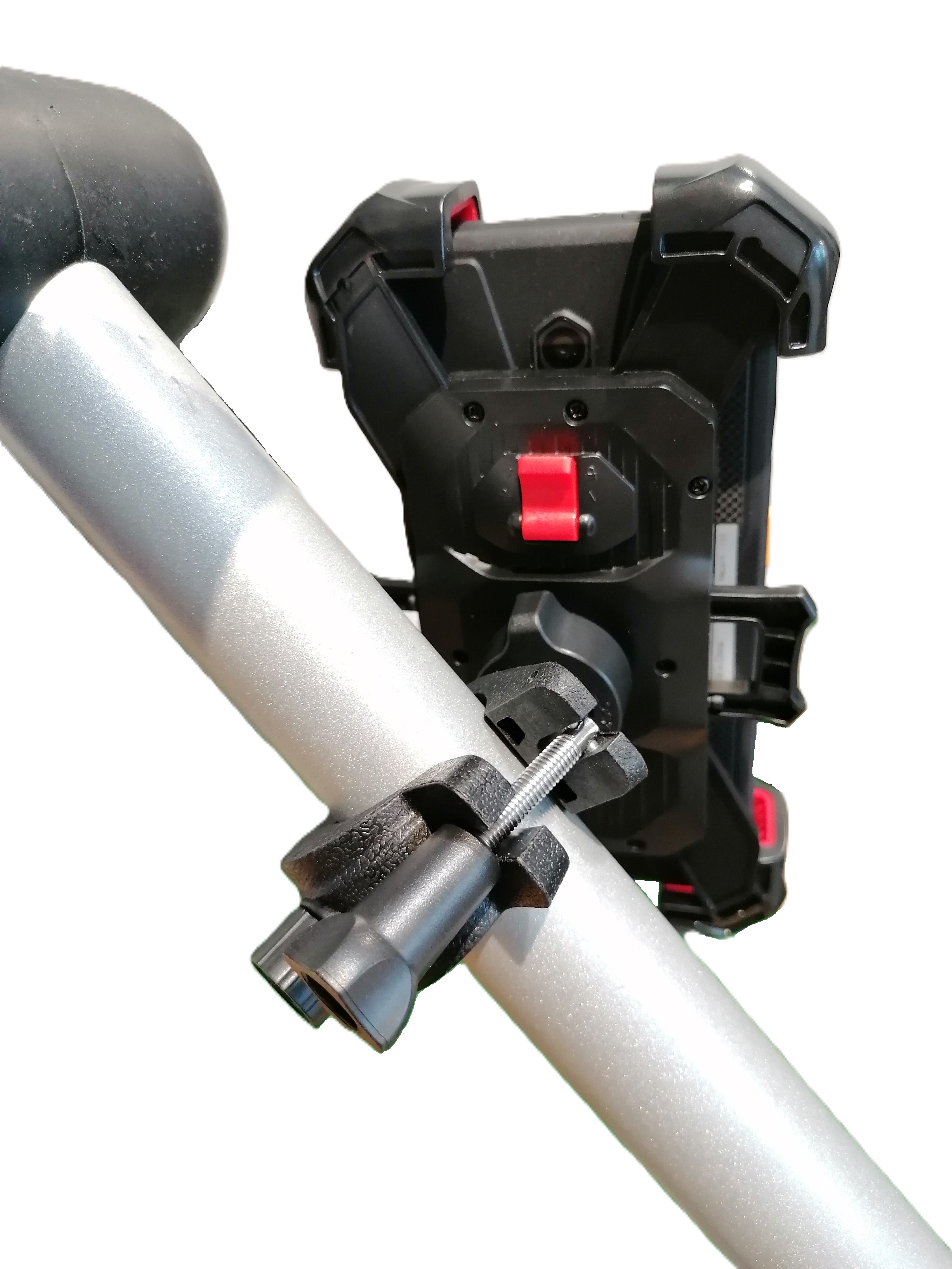 Mit dieser verstellbaren Smartphone-Halterung befestigen Sie Ihr Handy sicher und komfortabel an Ihrem Golf-Trolley.