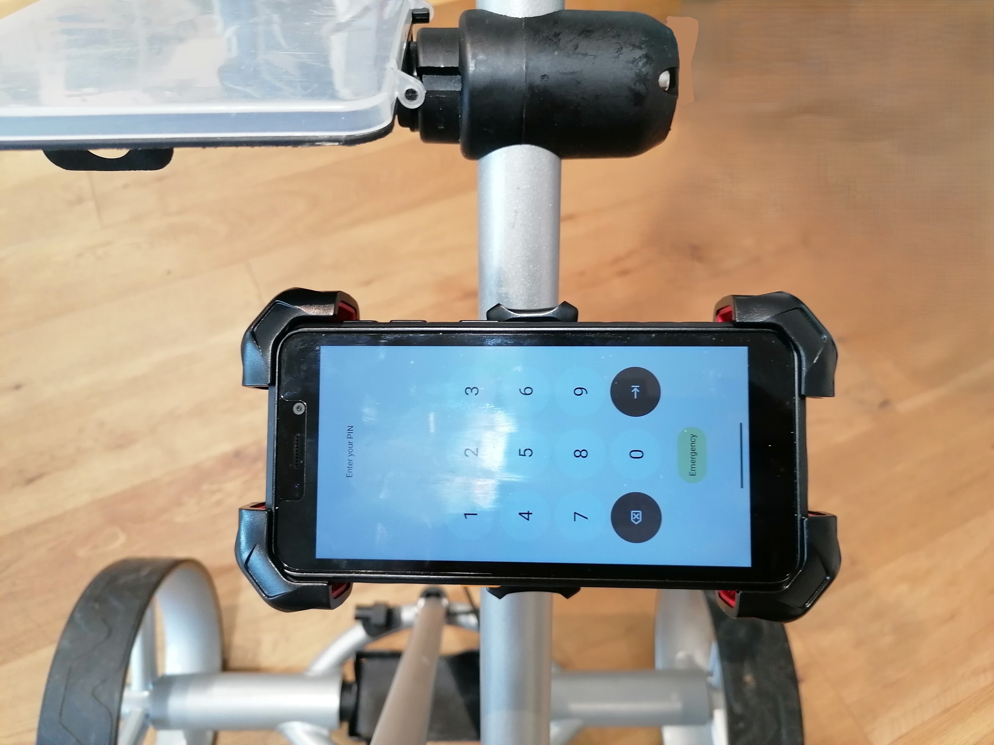 Der grosse Vorteil dieser praktischen Halterung ist ihre einfache Montage – sie lässt sich mühelos am Griff des Trolleys anbringen und sorgt dafür, dass Ihr Smartphone während der Golfrunde stets sicher und griffbereit bleibt.
